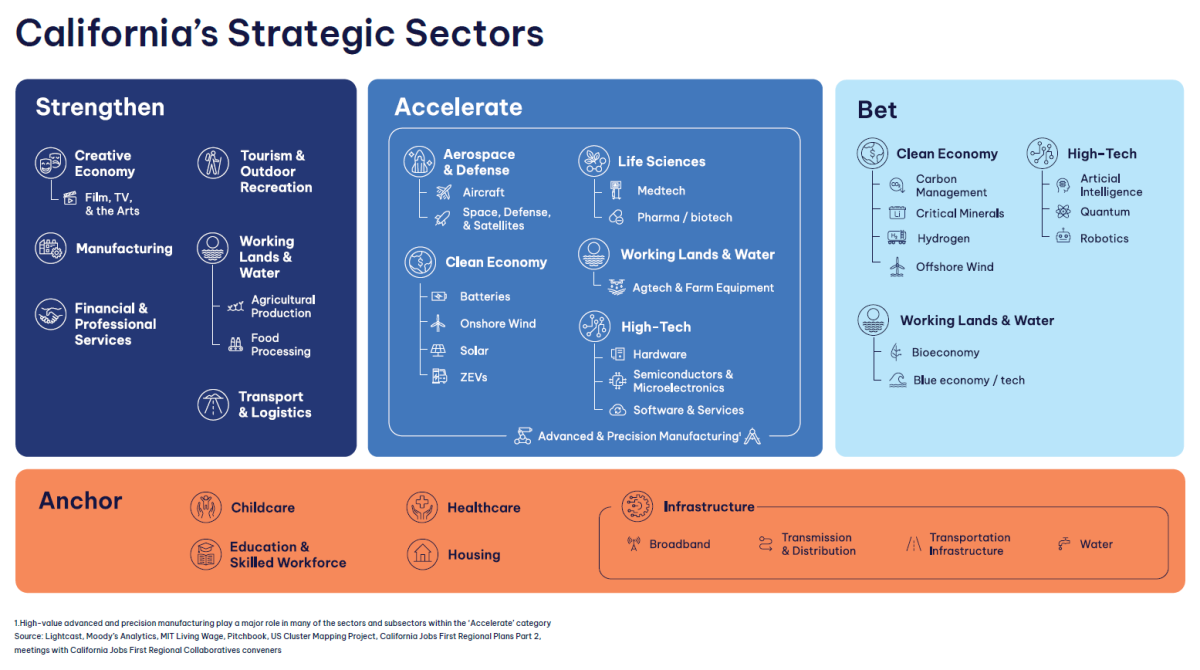 The California Jobs First team has announced the Regional Investment Initiative Implementation (RII) Round 1 awards totaling $80M that include projects in the Aerospace and Defense, AgTech, Bioeconomy and Life Sciences sectors. Congratulations to all awardees! The Redwood Region is participating in an interregional Agtech & Farm Equipment initiative that received $28,632,344 across four projects. This funding will strengthen the agtech and farm equipment sector through workforce development, ecosystem support, and infrastructure improvements spanning the North State, Redwood Region, North San Joaquin Valley, Central San Joaquin Valley, and Southern Border Regions.